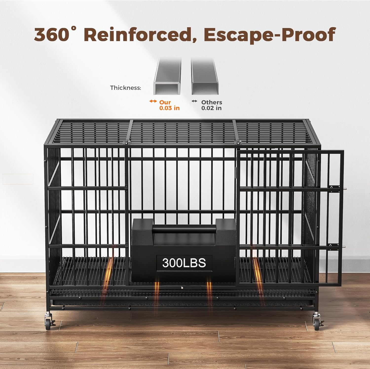 38" Heavy Duty Dog Crates for Small Dogs, Escape Proof, Upgraded 4 Lockable Wheels, Removable Door, Dog Kennel Indoor, Max Load 300Lbs, Easy to Clean, Medium Dog Crate for High Anxiety Dogs