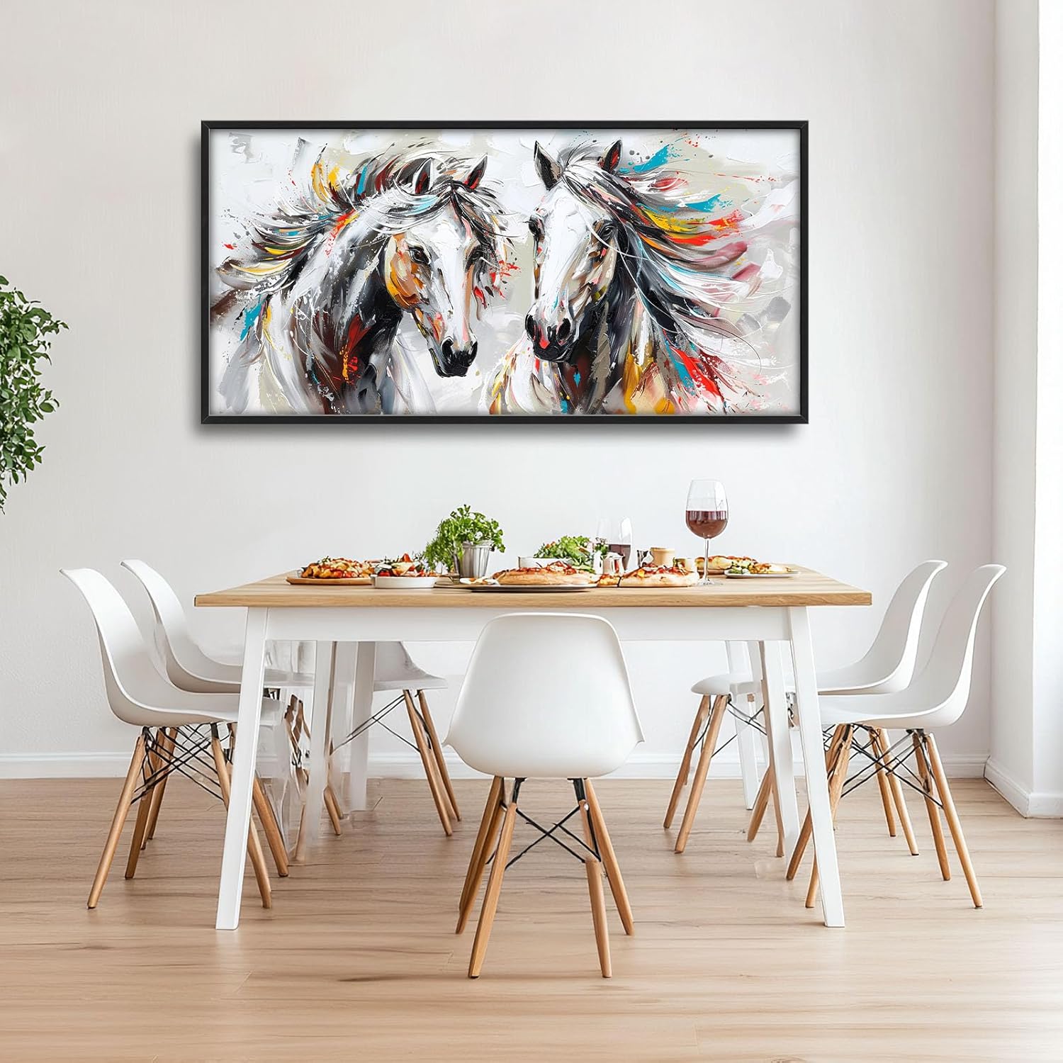 Quorin Horse Large Wall Art White Horse Animal Pictures Wall Decor Colorful Graffiti Canvas Print Painting Artwork for Bathroom Living Room Bedroom 60L x 30W