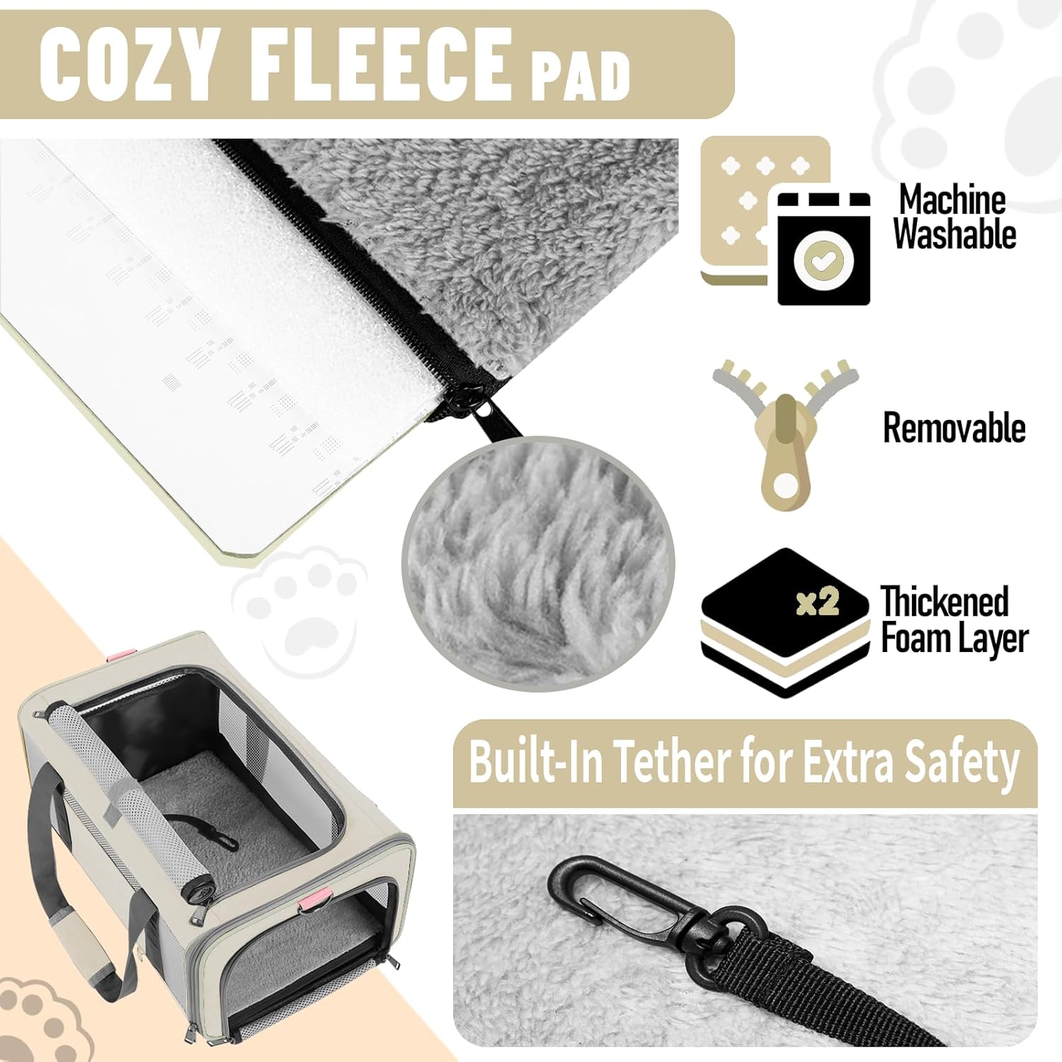 Pet Carrier for Large Cat 20 lbs+ / Soft Sided Small Dog 12 Pounds Travel Crate Top Load/Collapsible Kitty Carry Bag Big Kitten Mesh/Sturdy Animal Transport cage Kennel Long Trips Beige