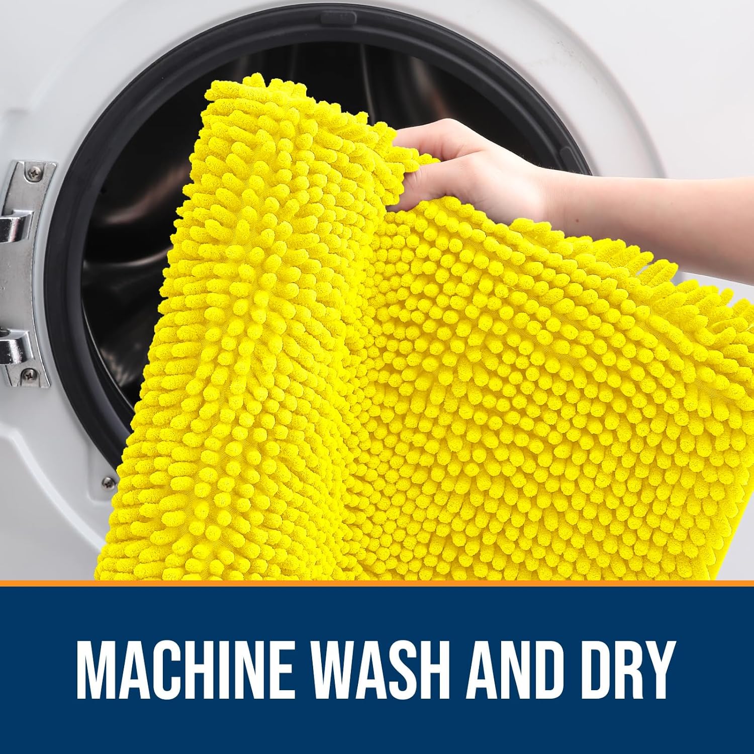 OLANLY Dog Door Mat for Muddy Paws 36x24, Absorbs Moisture and Dirt, Absorbent Non-Slip Washable Doormat, Quick Dry Chenille Mud Mat, Entry Indoor Entryway Carpet for Inside Floor, Lemon Yellow