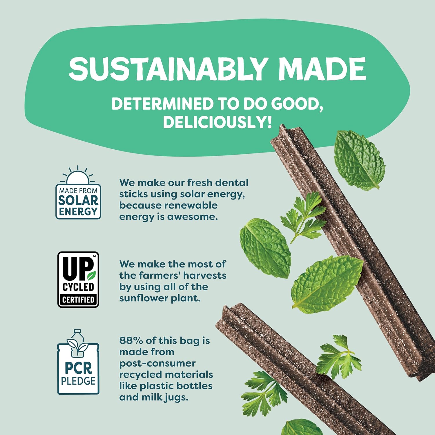 - Doggy Dental Sticks: Help keep your pup’s pearly whites clean and their breath fresh with these Shameless Pets Mighty Mint Dental Sticks. We made our dental treats with ridges in order to deep clean teeth, and we’ve added key upcycled ingredients to support your pup’s total health. Includes one bag of 32 sticks, so you have enough to keep those pearly whites clean all month long.
