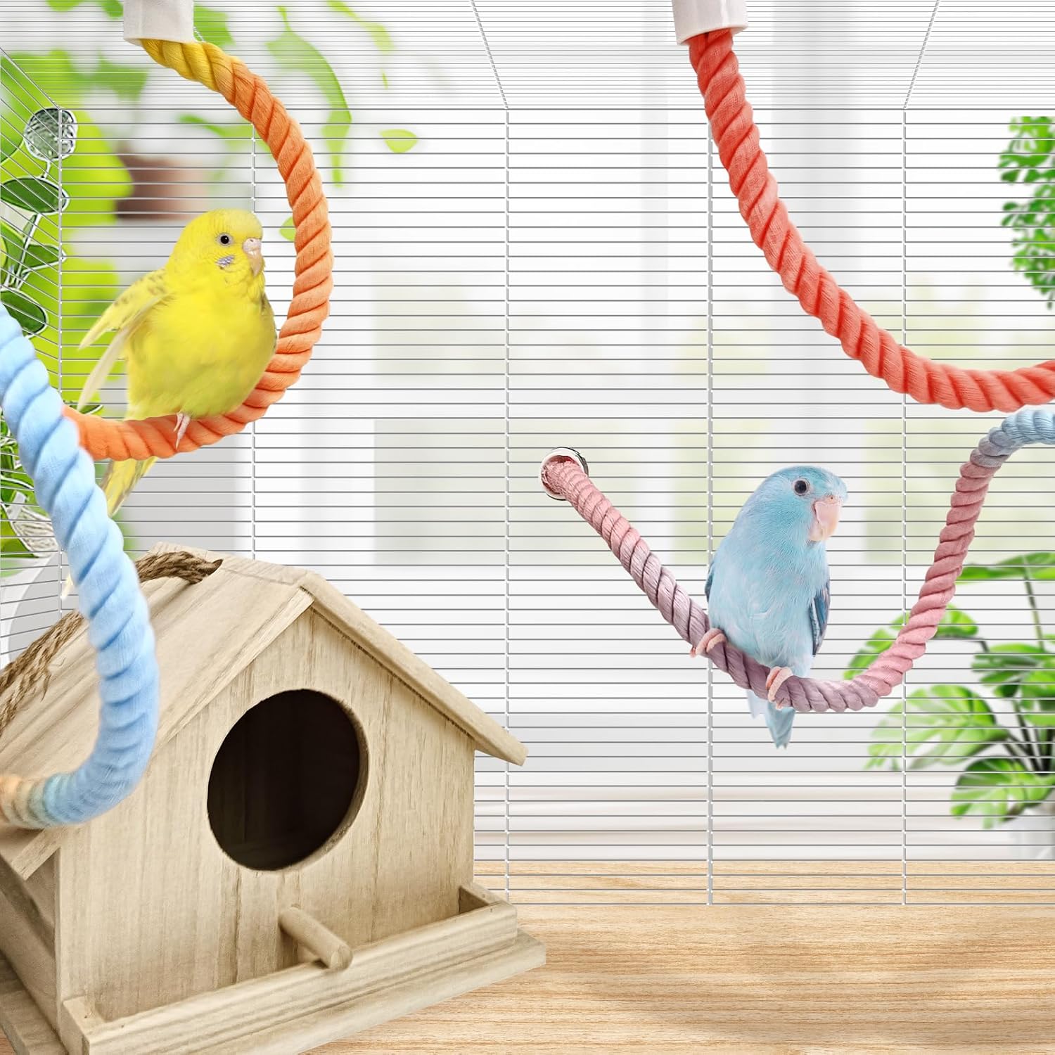 - Gradient Colors: Bird perch rope uses gradient sunset, rope perches for parrots can not only decorate the birdcage but also attract birds to play, helping to promote the birds' movement