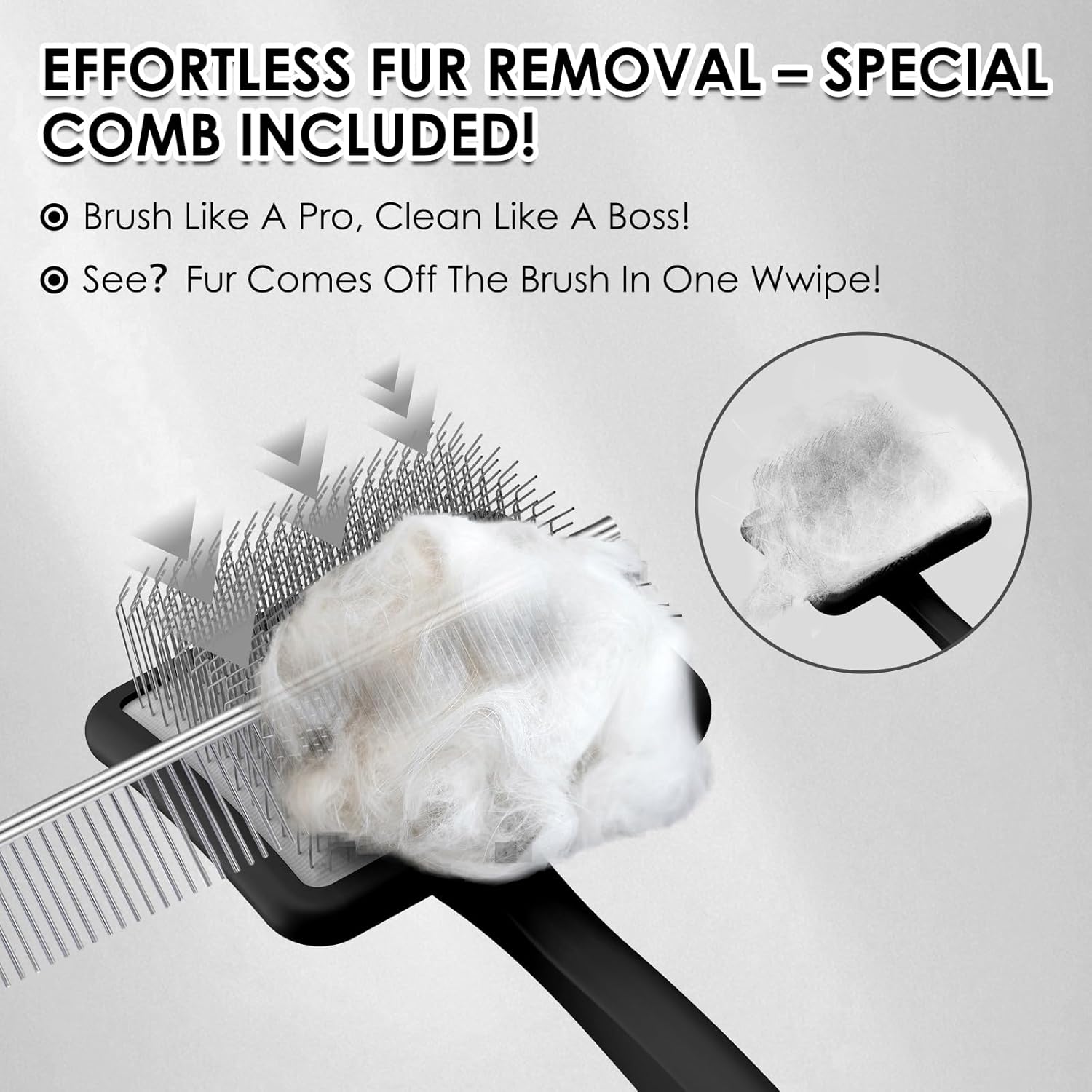 Large Slicker Brush for Dogs - 3PC Pet Grooming Kit - Undercoat Rake & Stainless Comb | Long Pins Remove Mats on Poodles, Golden, Labradoodles | Thick Coat Deshedder for Dogs, Cats, Black
