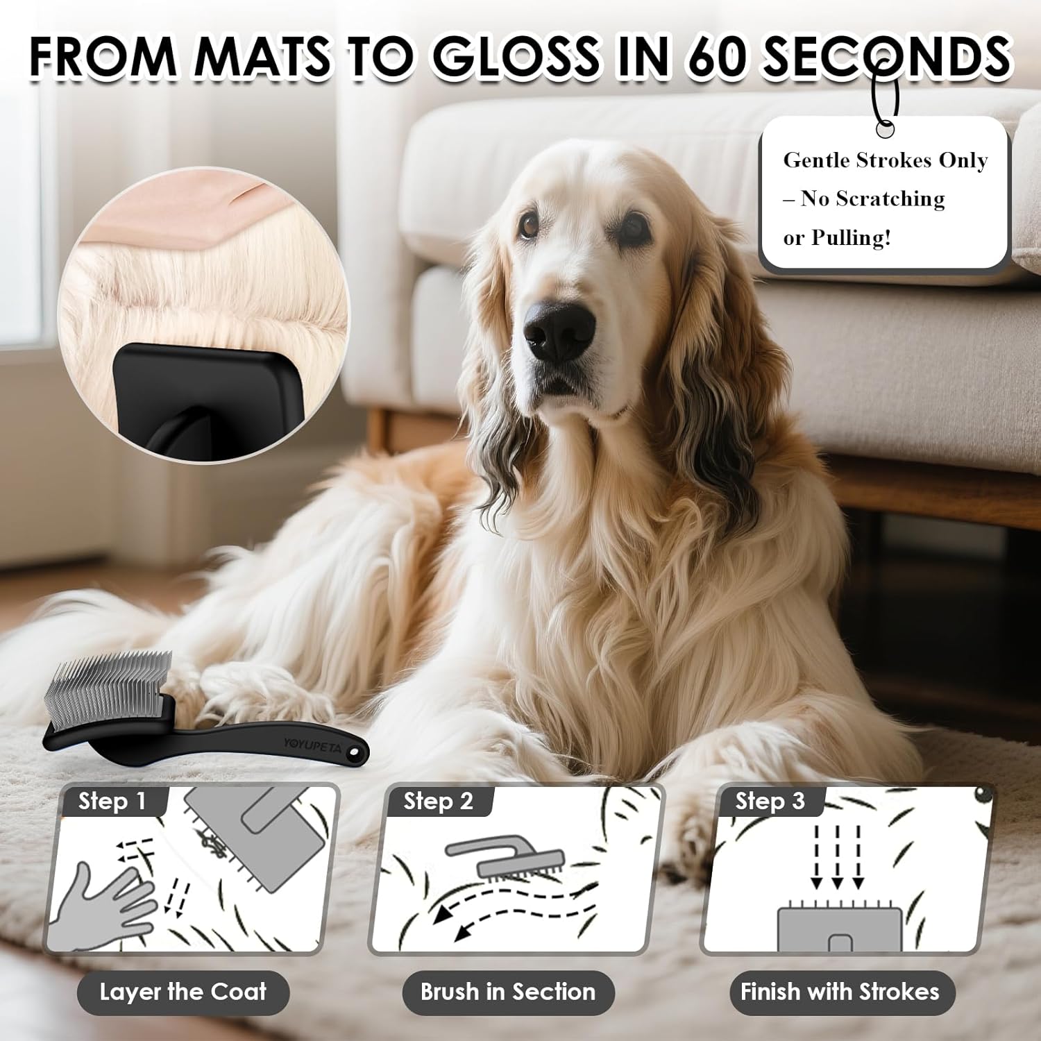 - Pro Slicker Brush for Thick Coats: YOYUPETA's large dog slicker brush removes Golden Retriever undercoat effortlessly. 1" long pins reach deep without scratching. Includes stainless comb & undercoat rake for mats. Groomer's choice for Huskies/Persians. Solve shedding season chaos.