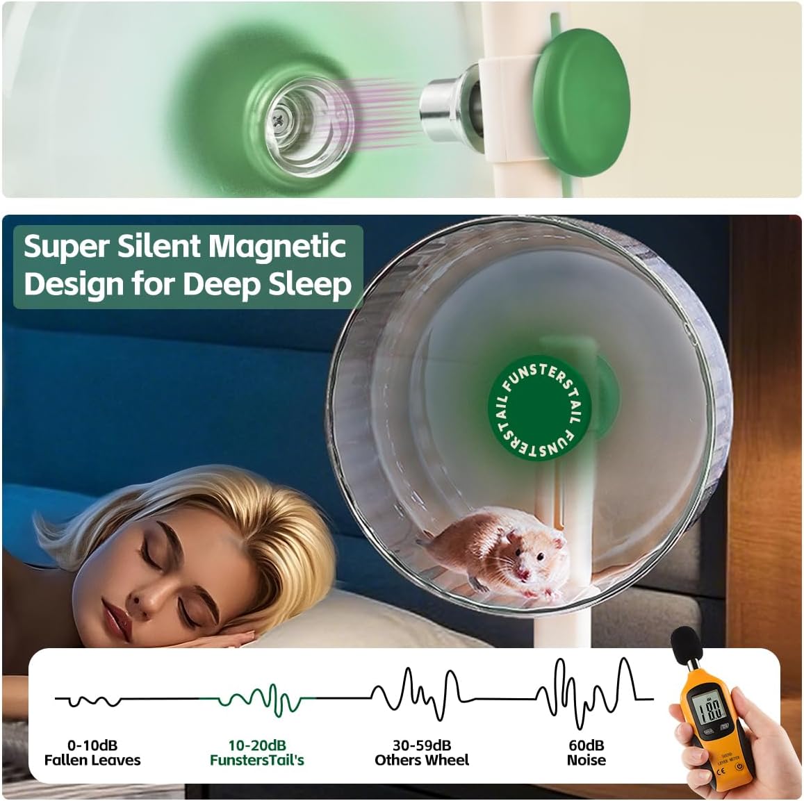 - Super Silent Night Runs: Our magnetic axle design eliminates friction noise, making it ideal for late-night use. Perfect for light-sleeping owners or cage setups—your dwarf hamster or hedgehog can run freely without disturbing your sleep