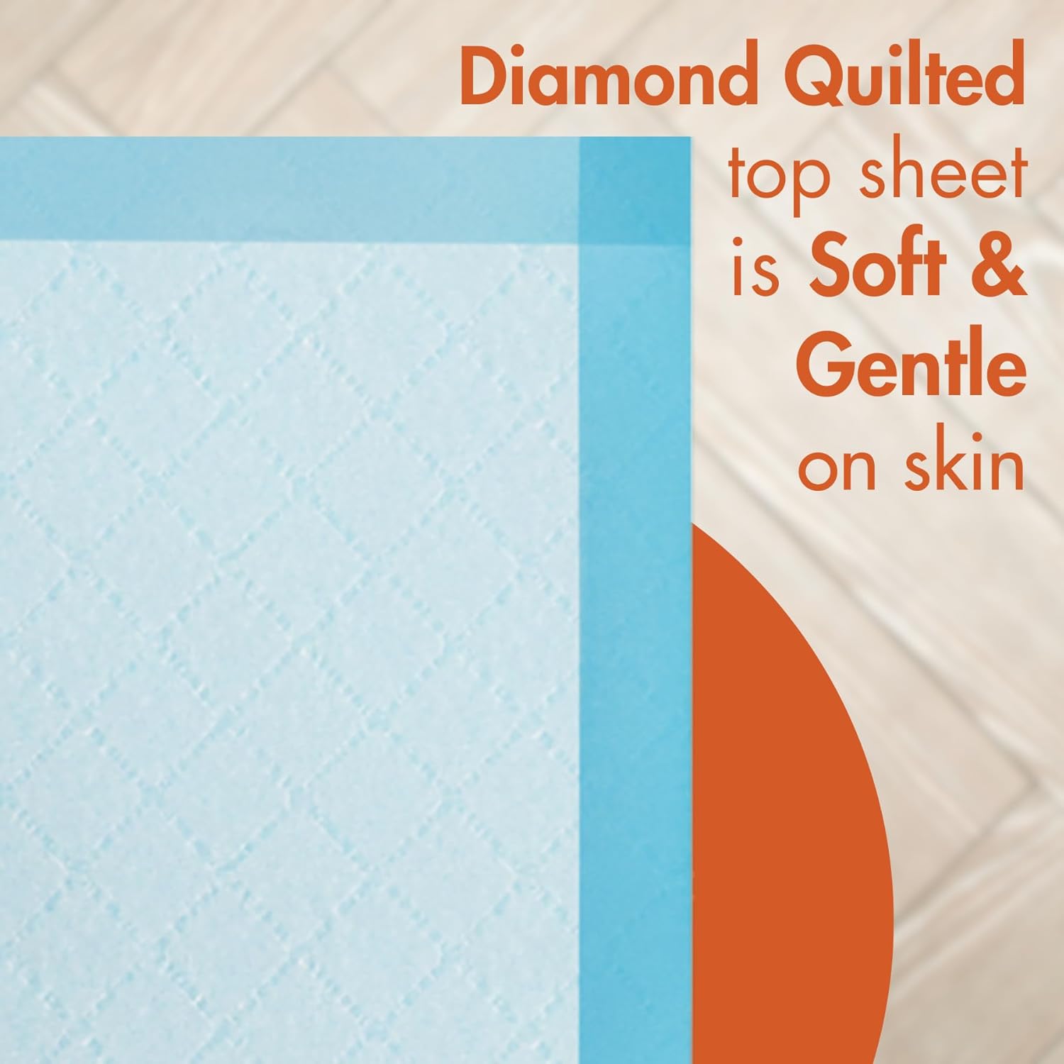 - Gentle diamond-quilted top sheet keeps skin dry and comfortable during use, suitable for incontinence care, pet training, and baby changing needs