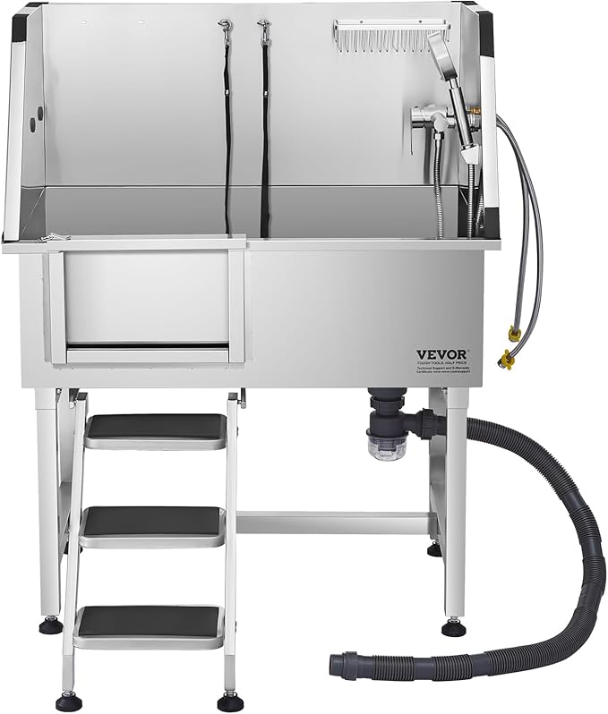 - Anti-Slip and Leak-Proof: The upgraded sealing system and anti-slip stairs with limit holes ensure stability, avoiding wobbling and slipping when pets enter and exit. The drainage kit keeps smells at bay, ensuring a reliable experience during bath time
