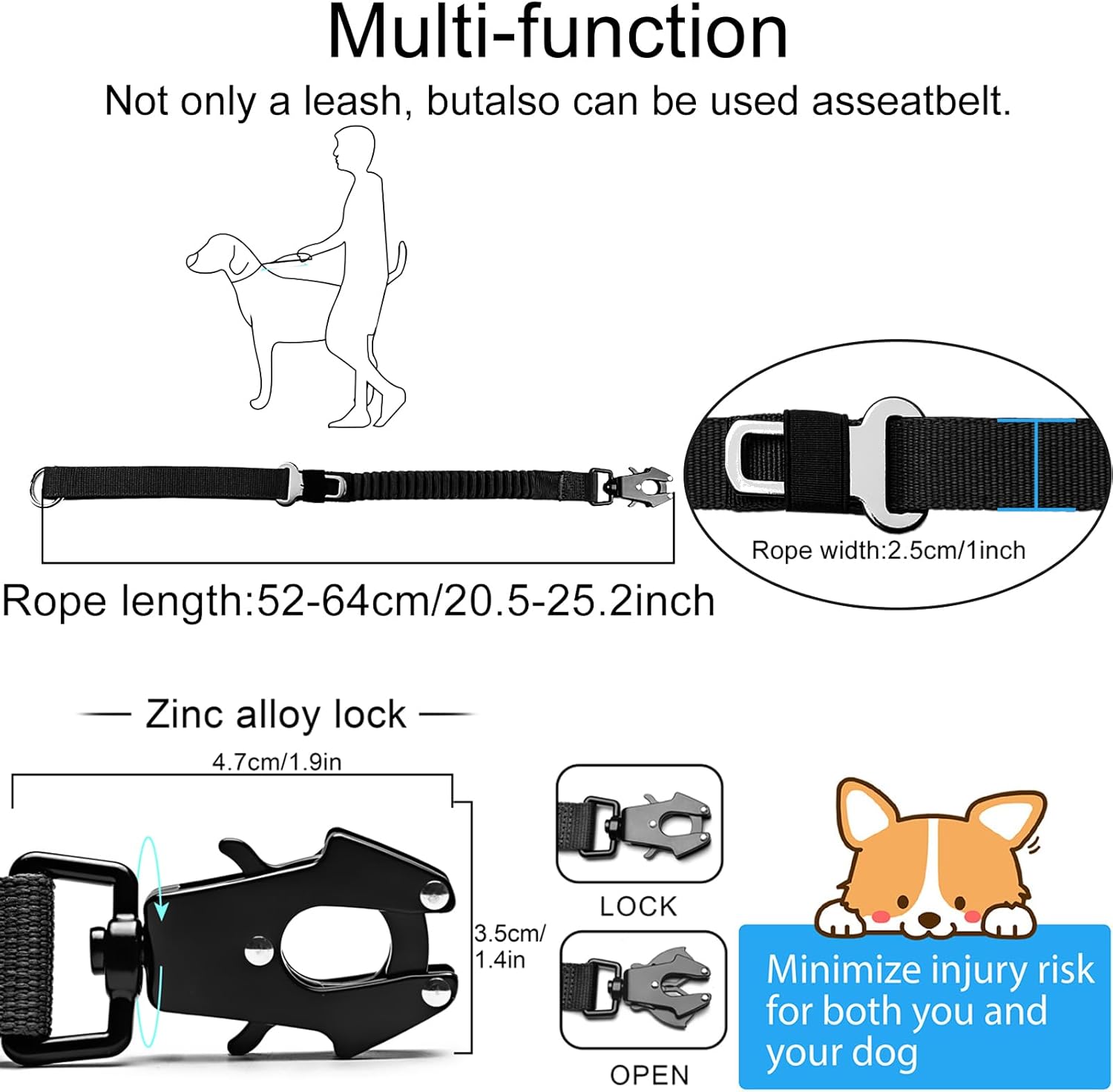 - Traffic Handle Control: short leash for dog training allows you to control your dog, Shock-absorbing Bungee to reduce strain during Dog pulling suddenly, minimizing shock, back strain and muscle damage caused by excessive pulling