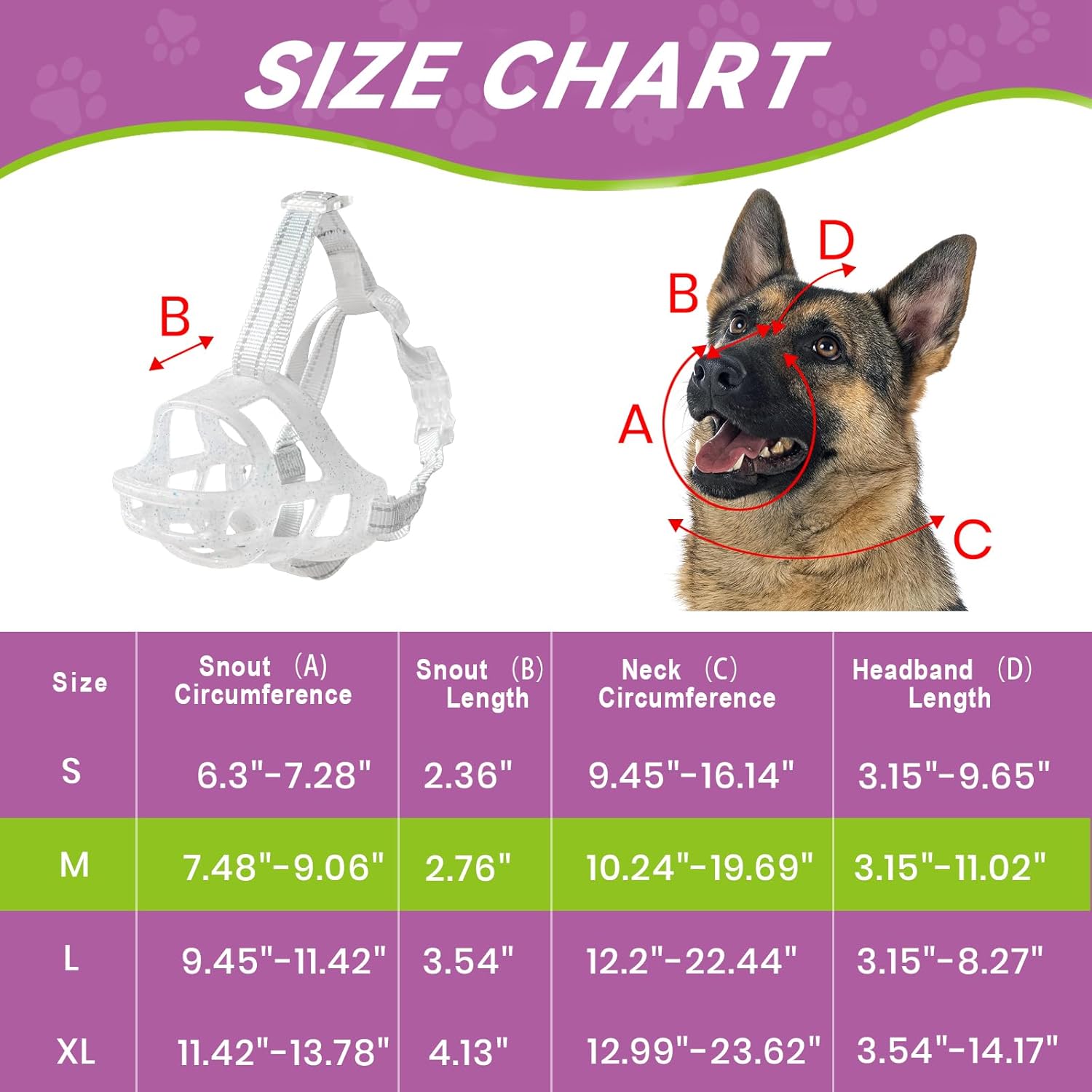 Glow-in-The-Dark Dog Muzzle, Basket Muzzle for Small Medium Large Dogs,Anti-Biting Chewing, Lightweight Cage Design,Allows Drinking & Panting,for Grooming & Training (Transparent Size M)