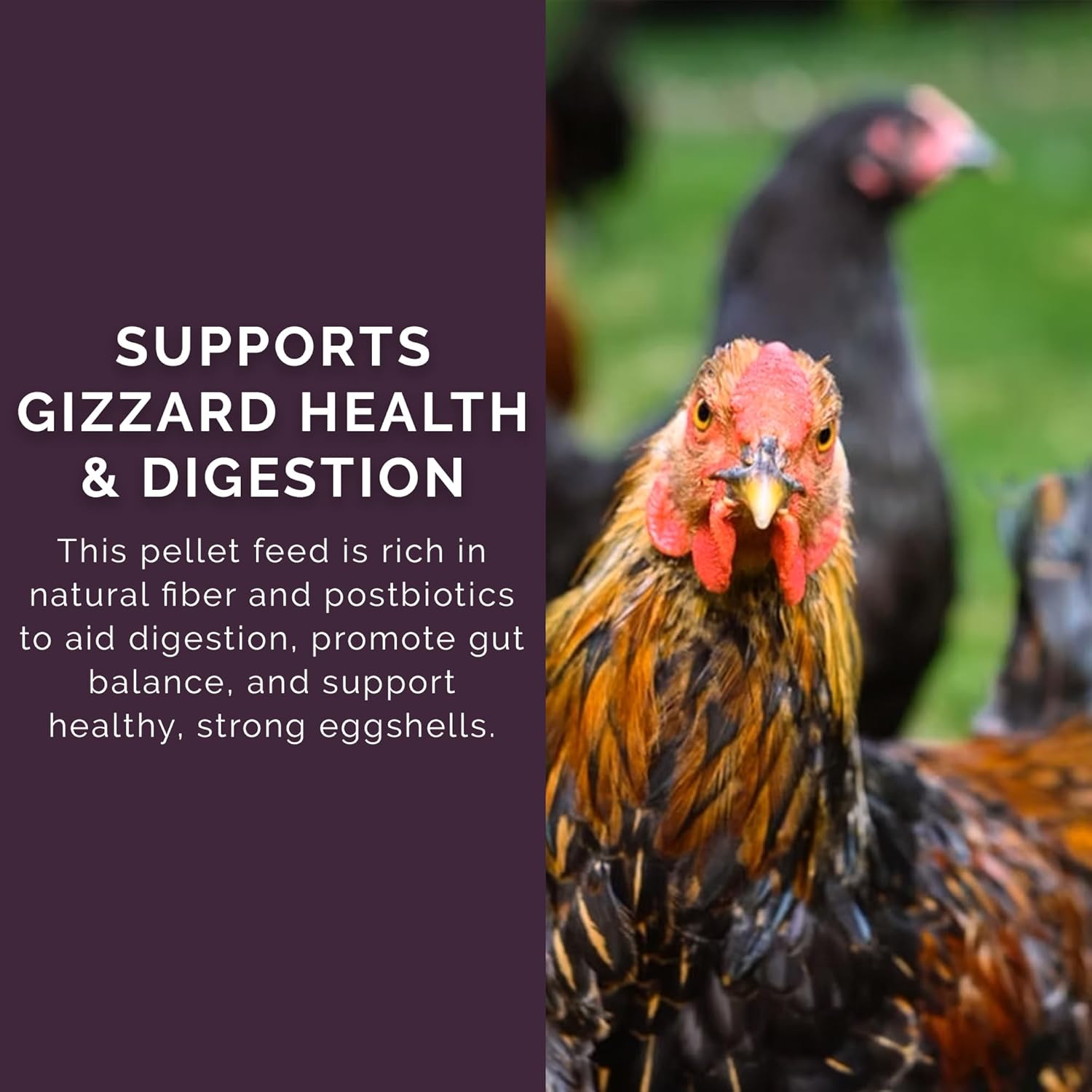 - Supports Gizzard Health & Digestion: This 25-pound bag of pellet feed is rich in natural fiber and beneficial nutrients to aid digestion, promote gut balance, and support healthy, strong eggshells.