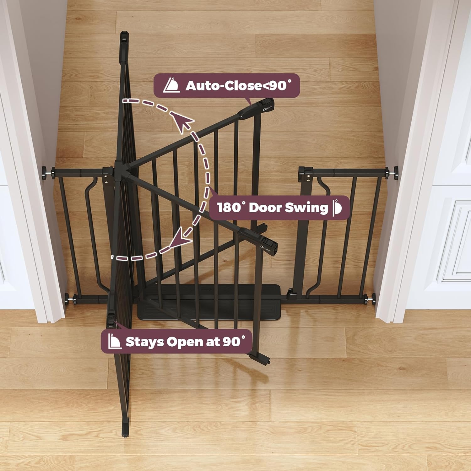 - Auto-Close Dog Gate: Designed with an intelligent self-closing system, this indoor dog gate automatically swings shut at angle under 90°, providing reliable protection against accidental openings.