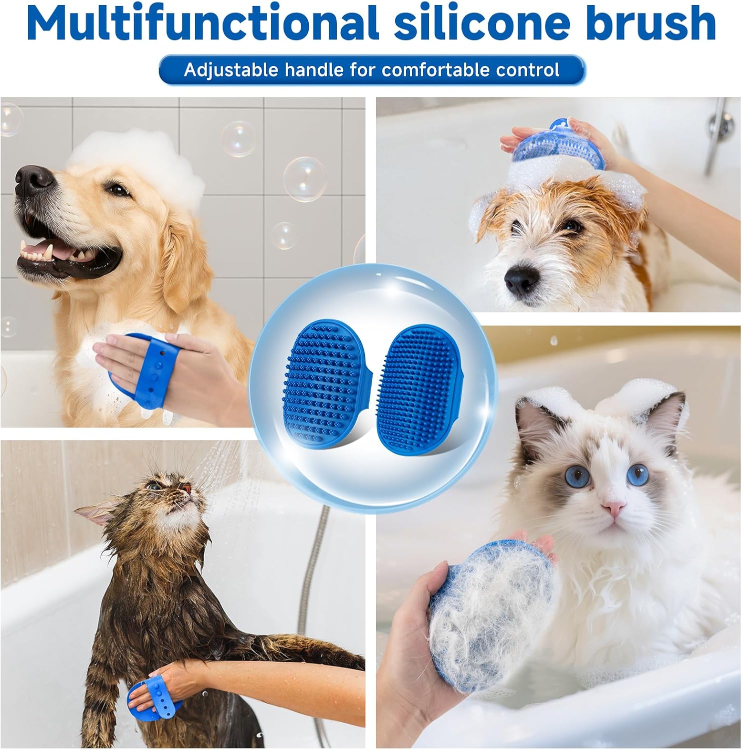 - ✅ Deep Cleansing Massage Silicone Bath Mitt – Included bath mitt, made of soft and flexible silicone material, can help remove loose hair, dirt and dander from pets while gently massaging pet skin.