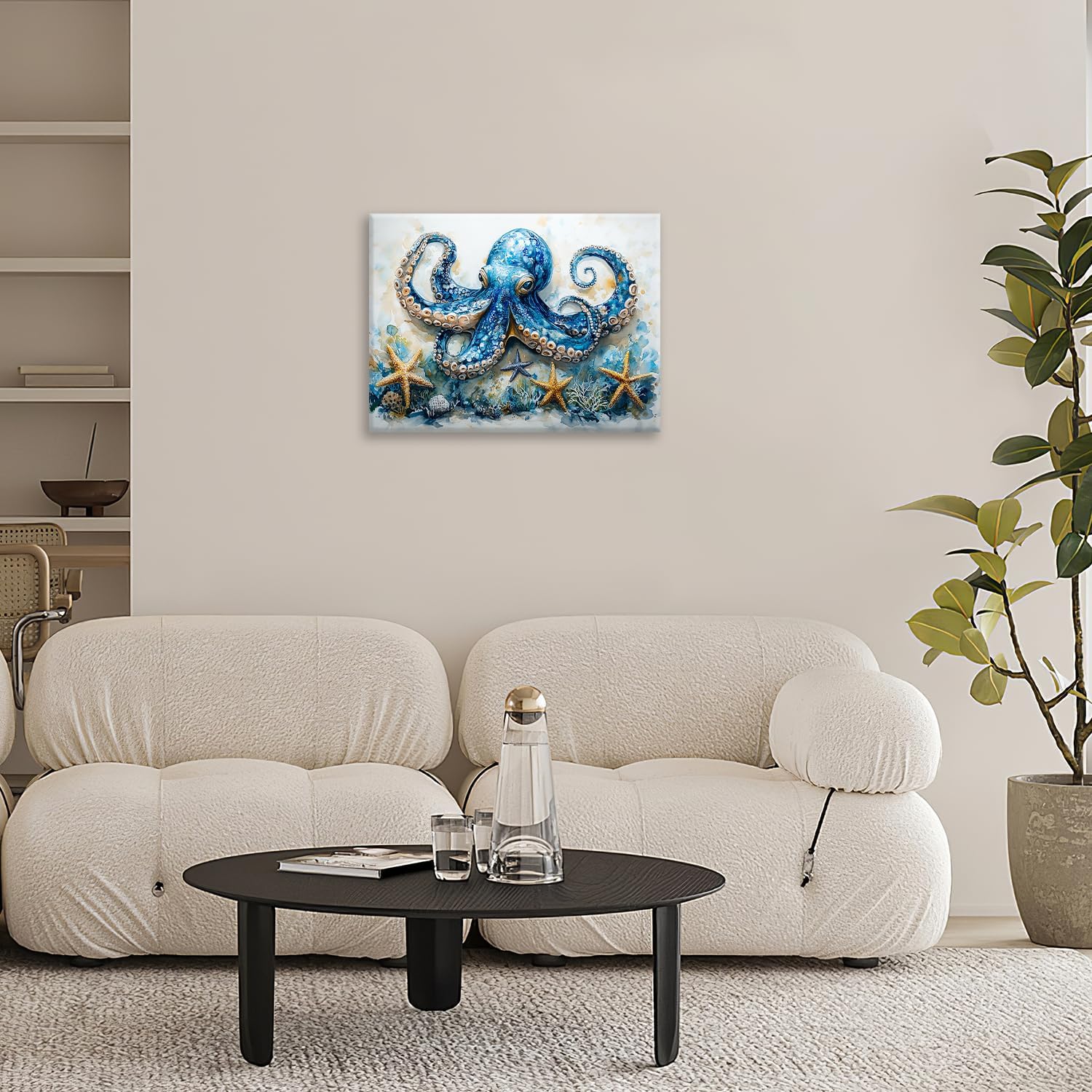 Octopus Bathroom Pictures Wall Art, Sea Animal Ocean Bathroom Wall Decor, Nautical Framed Painting Canvas Artwork for Bedroom Living Room Decorations 16"L x 12"W