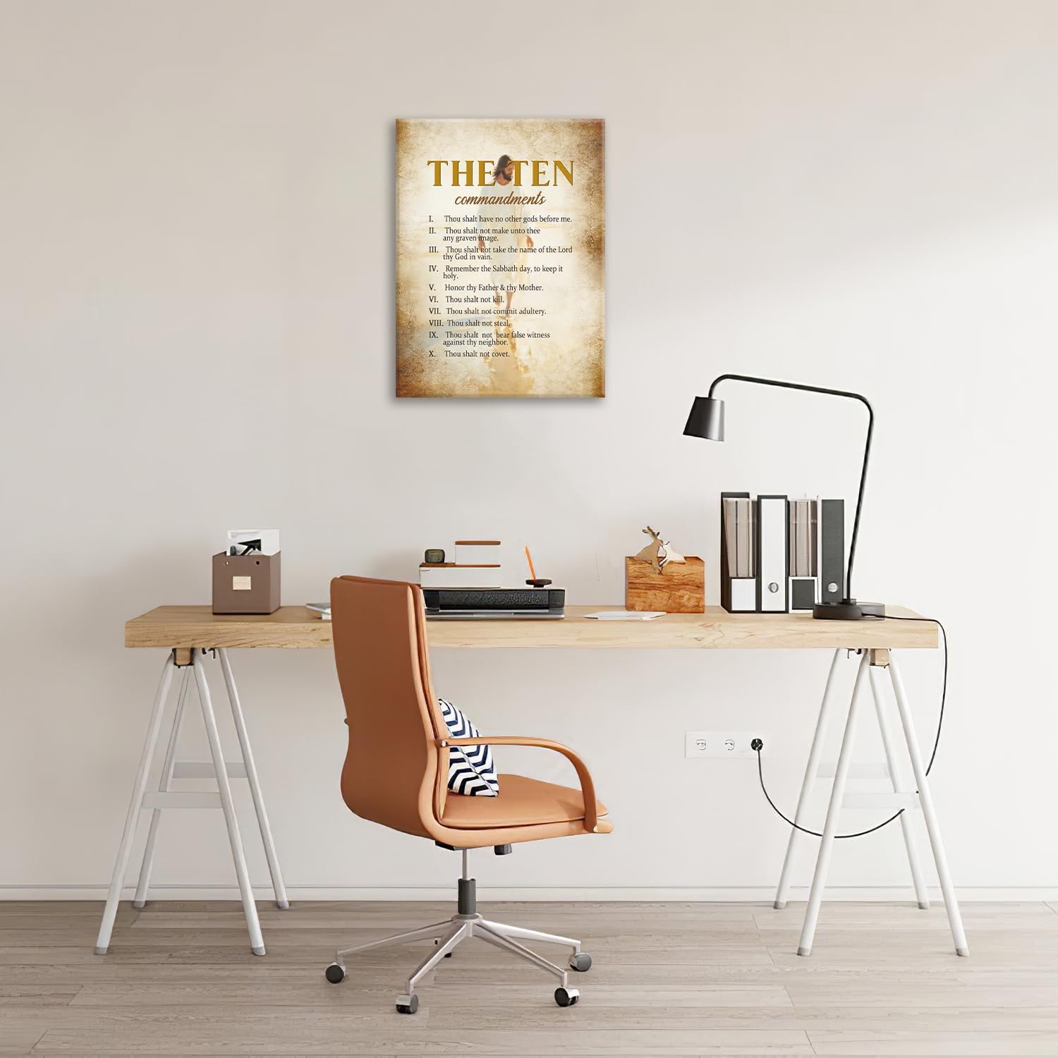The Ten Commandments Christian Pictures Wall Art, Bible Verse Jesus Bathroom Wall Decor Religion Scripture Framed Painting Religious Canvas Artwork for Church Bedroom Living Room 16"L x 12"W
