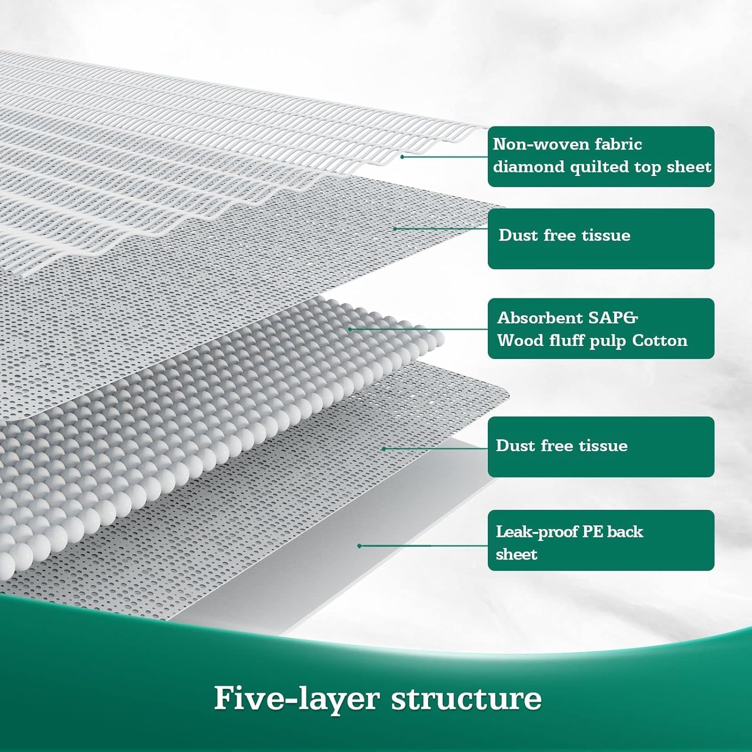 - Enhanced Absorption Capacity by 15%: Our premium bed pads with 6 layers can lock in large amount of liquid instantly.With advanced absorbent core and polymer(SAP),the heavy duty pads realize 3 Seconds flash dry absorbs without swelling or disintegrating