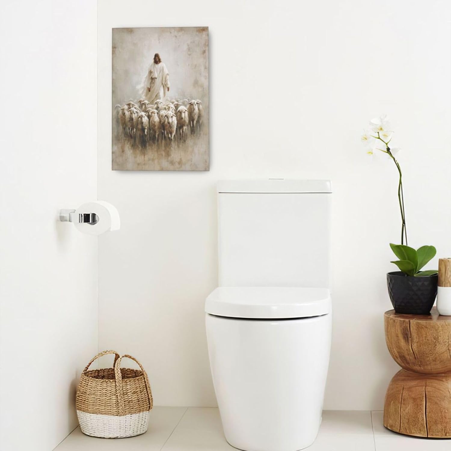 Jesus and Lamb Wall Art Christian Jesus Lamb Canvas Wall Decor Christ Religious Pictures painting Print Framed Artwork Decorations Gifts for Living Room Bedroom Prayer Room Church 16"x24"