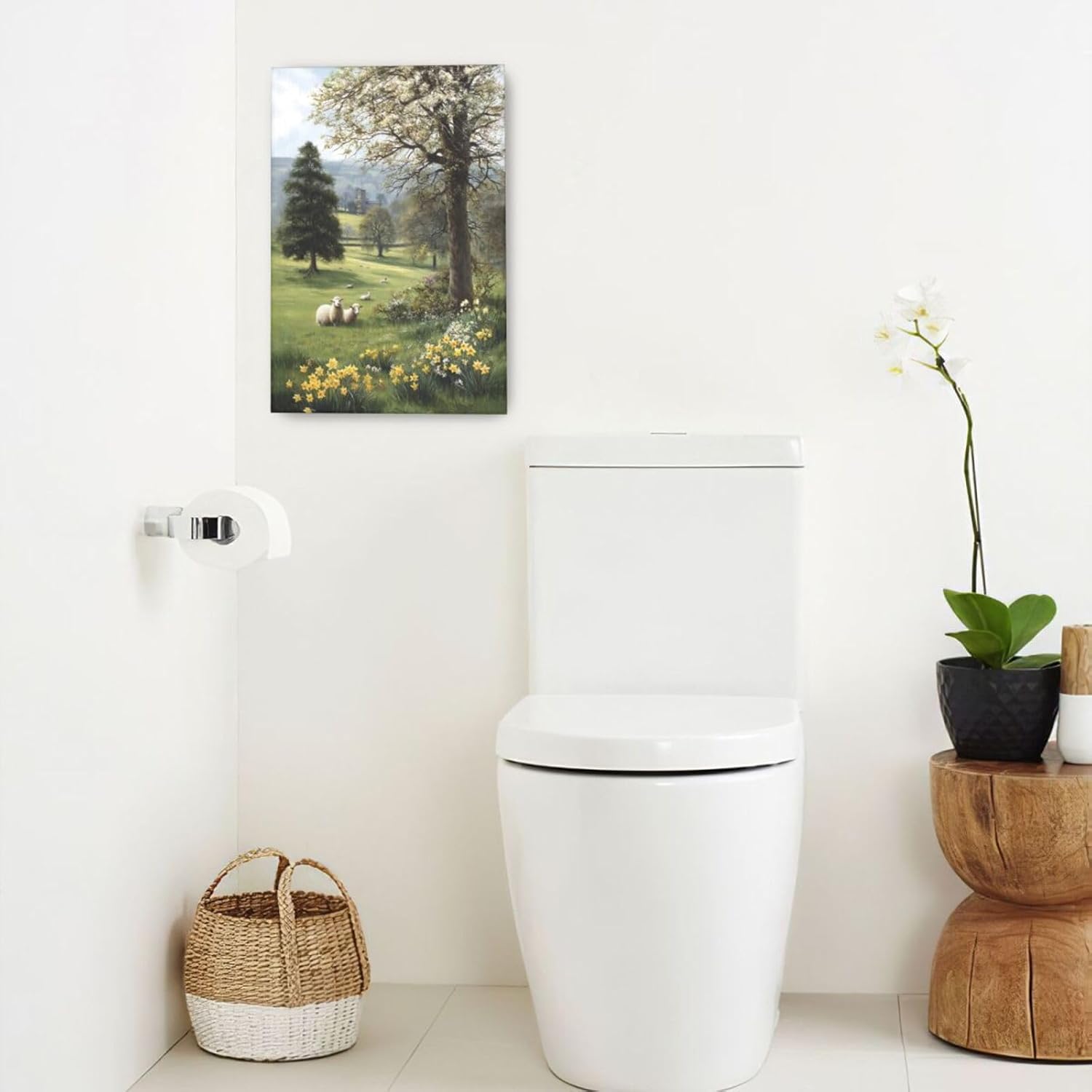 Country Sheep Canvas Wall Decor Farmhouse Rustic Lamb Wildflower Wall Art Nature Countryside Landscape Pictures Painting Print Framed Artwork Decorations for Bathroom Living Room Bedroom 16"x24"