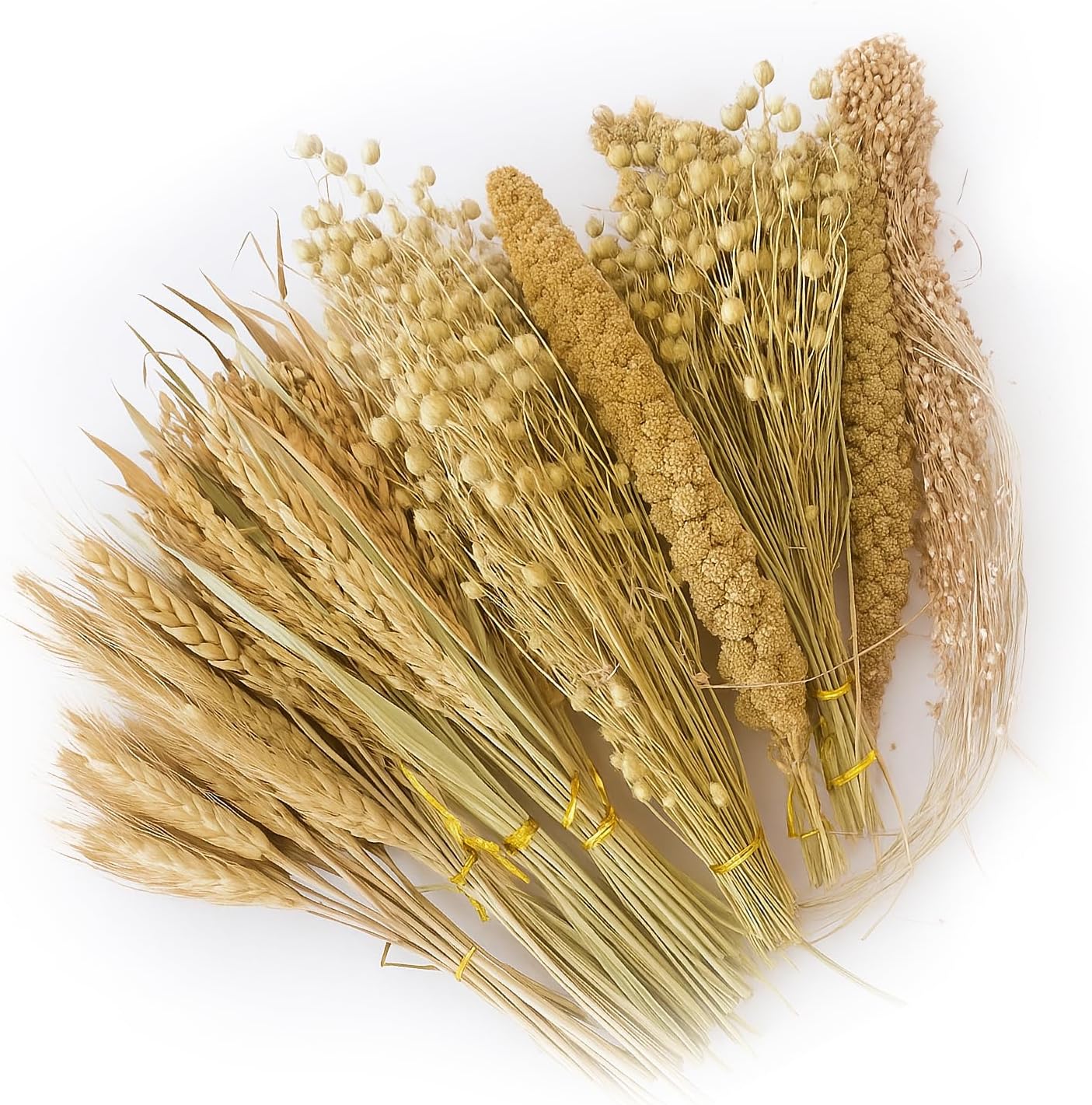 - Abundant Variety & Great Value: Enjoy large quantities at an affordable price. Features rich mixes: the 5-type blend includes rice ears, wheat ears, flax seed ears, yellow millets, and millet ears; the 7-type blend adds red and white sorghum for endless enrichment.