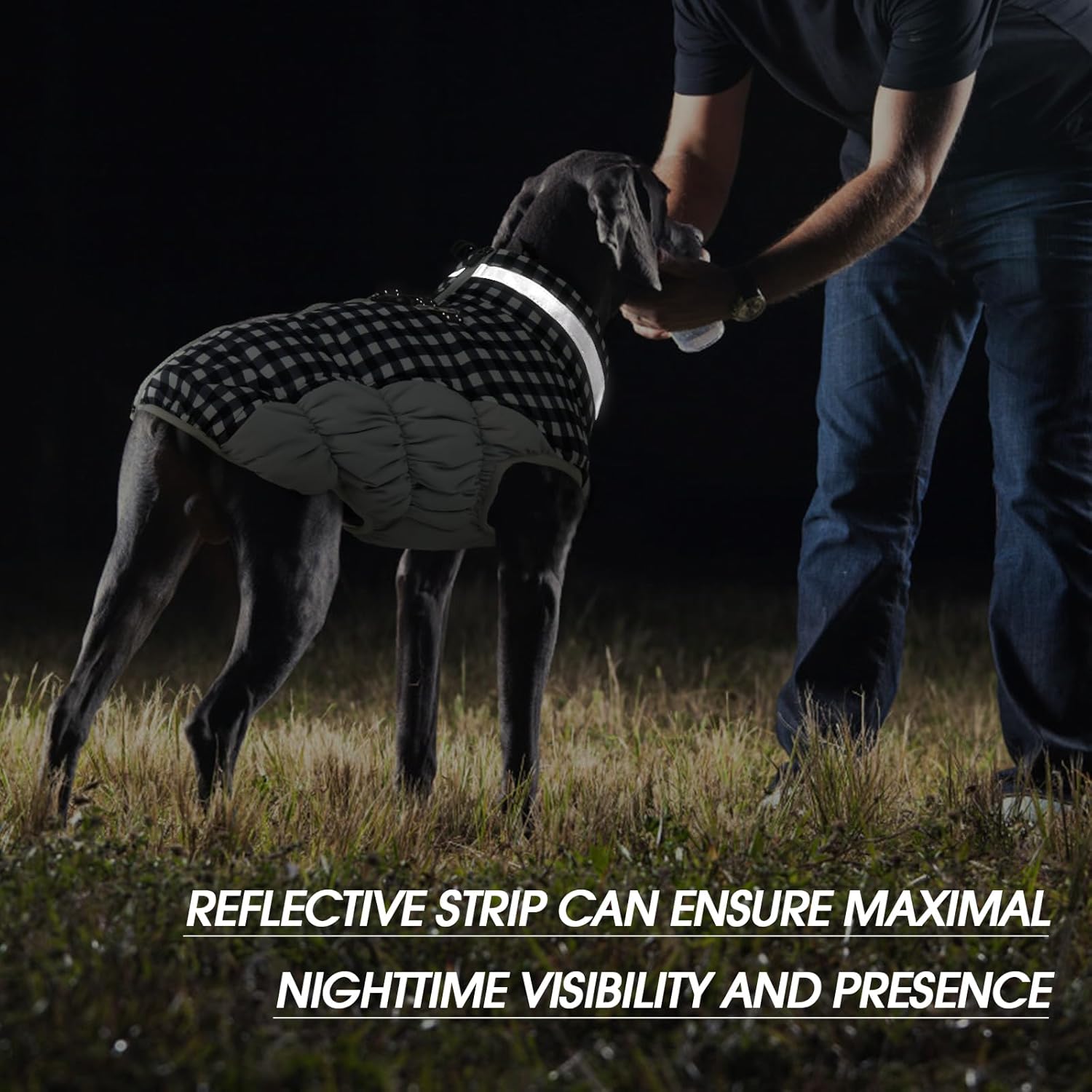FUAMEY Dog Coat for Small Dogs,Waterproof Dog Winter Jacket with Harness Built in Puppy Cold Weather Coats Reflective Pet Vest with Zipper Warm Fleece Dogs Snowsuit Windproof Checkerboard S