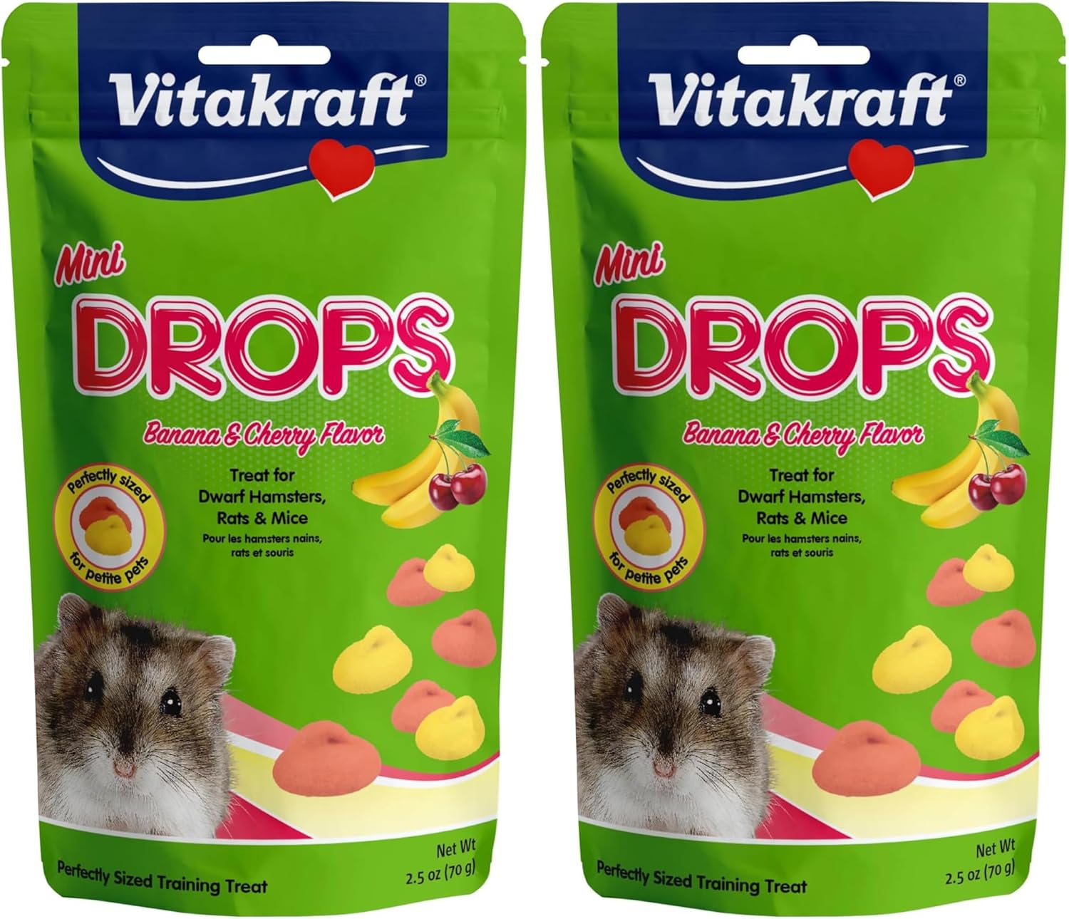 Vitakraft Drops Mini Banana and Cherry Flavor Dwarf Hamster Rat and Mouse Treat 2.5 oz (Pack of 2)
