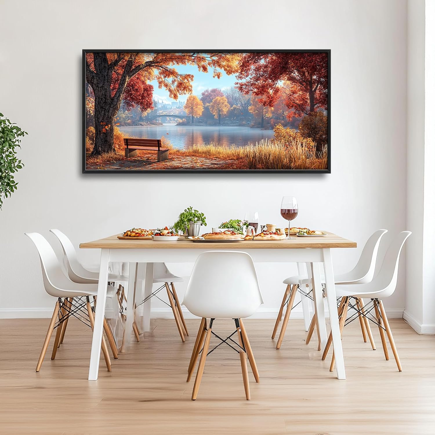 Large Autumn Tree Wall Art for Living Room, Framed Oversized Lake Landscape Wall Decor Nature Canvas Painting Modern Artwork for Living Room Bathroom Bedroom Office Dining Room 60"x30"