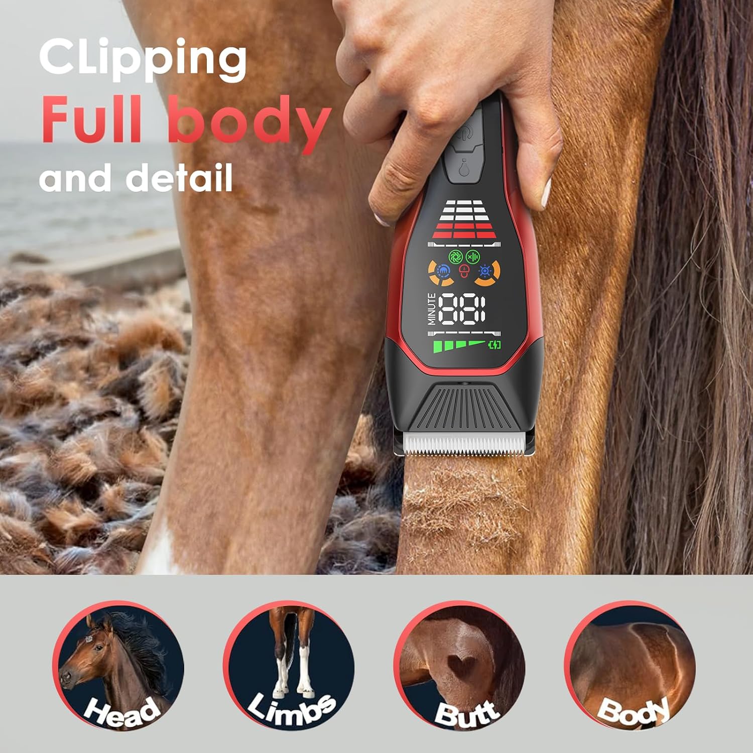 Horse Clippers,Quiet 2-Speed Horse Grooming Clippers,Rechargeable Pet Shaver for Matted Long Hair,Cordless Wide-Blade Powerful Horse Trimmer Kit for Thick Coat #066 Red