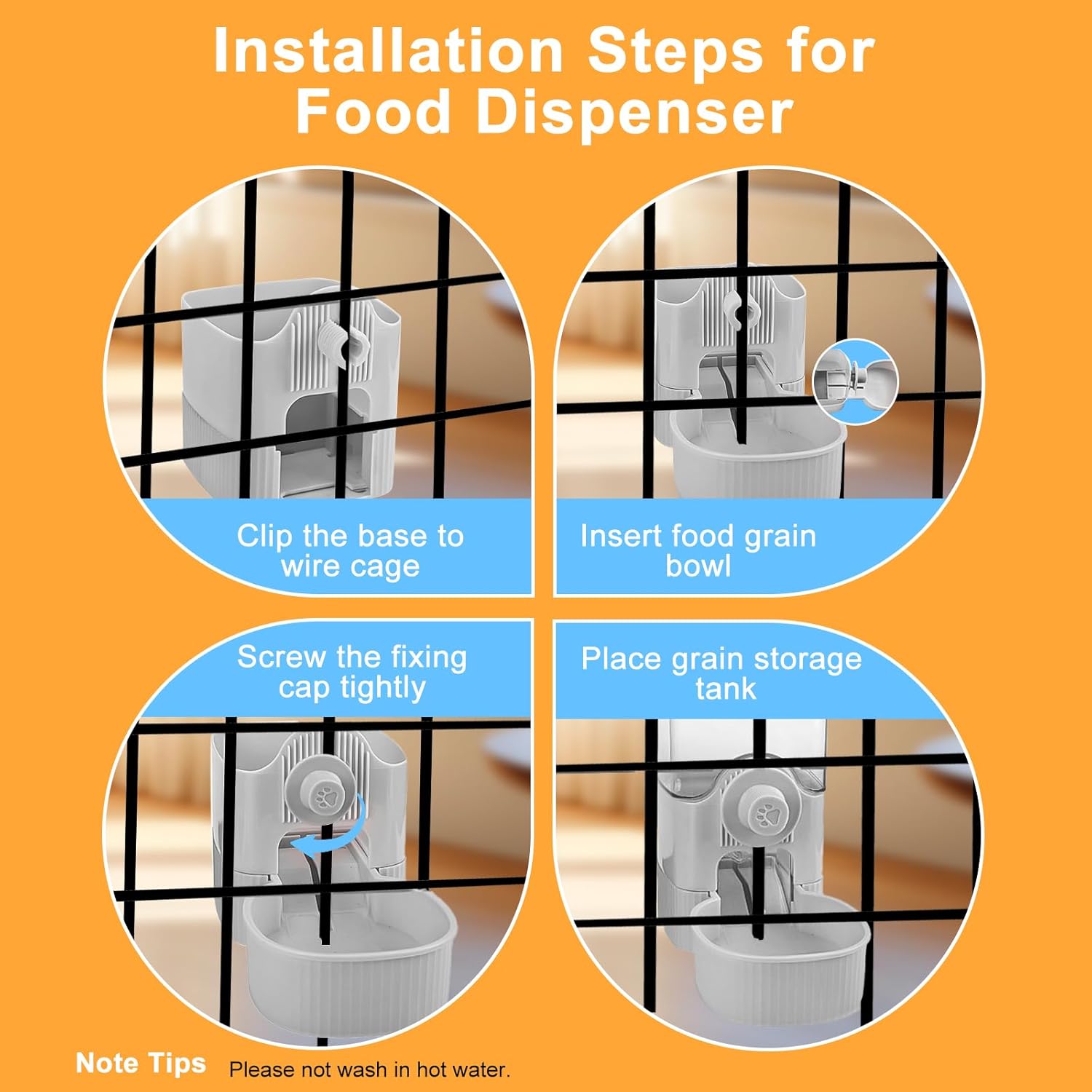 - Easy to Clean: It’s made of plastic, all parts can be detachable to water wash. The removable food box is not only simplifies refilling, but also for daily clean. The transparent food box allows for easy checking the remaining grain.