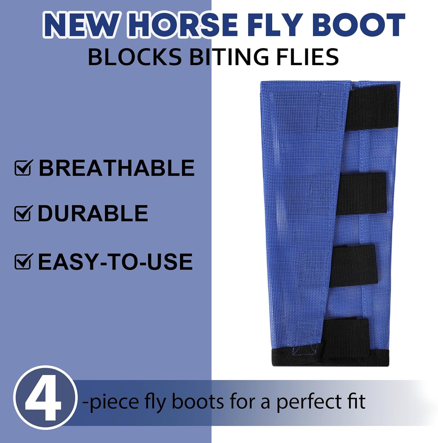 Premium 4-Pack Horse Fly Boots & Leggings Loose-Fit Fine Mesh with Stay-On Fasteners, Support Strips & Anti-Stomp Design Breathable Non-Slip Protection Leg Wrap (Large) Royal Blue