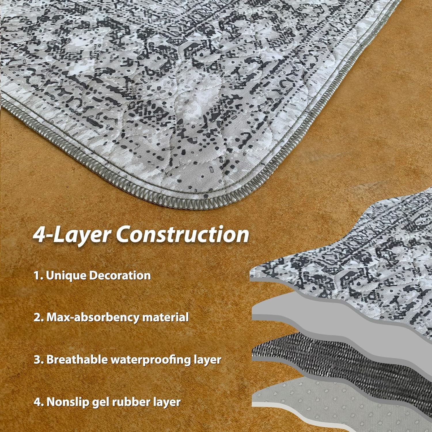 nunubaby Washable Pee Pads for Dogs, Stylish, Non-Slip and Leak-Proof Pee Pads. Reusable Potty Pads for Dogs for Crates and Floors.(Gray/Geo, 18" x24")