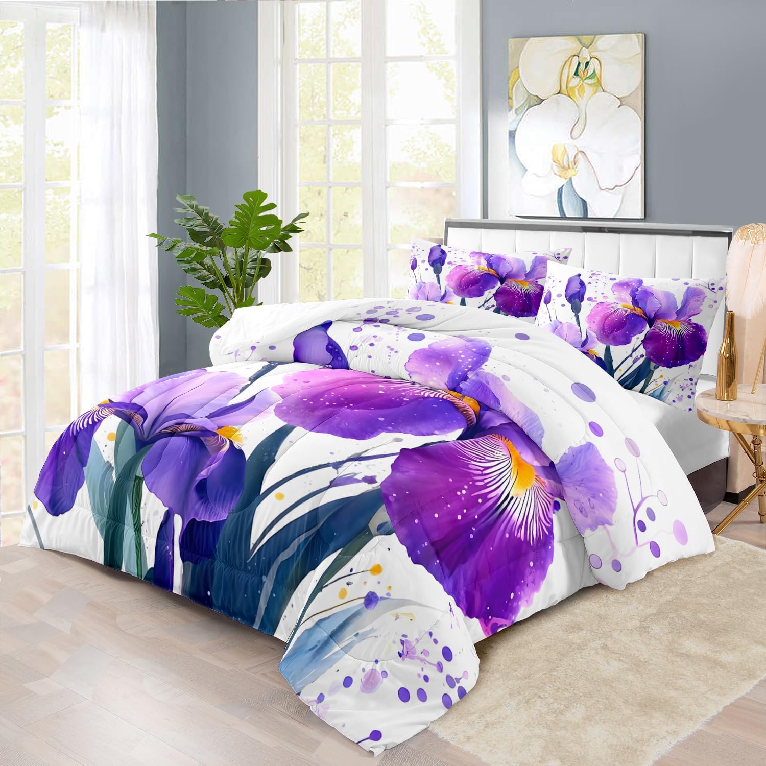 - Full Size Floral Iris Comforter Set :This bedding set includes 1 comforter(67" x 85") and 2 pillowcases(20”x30”). In order to facilitate transportation, the quilt is made of vacuum compression technology. It will be slightly wrinkled when taken apart, but it will quickly regain its fluffiness if you gently beat it.
