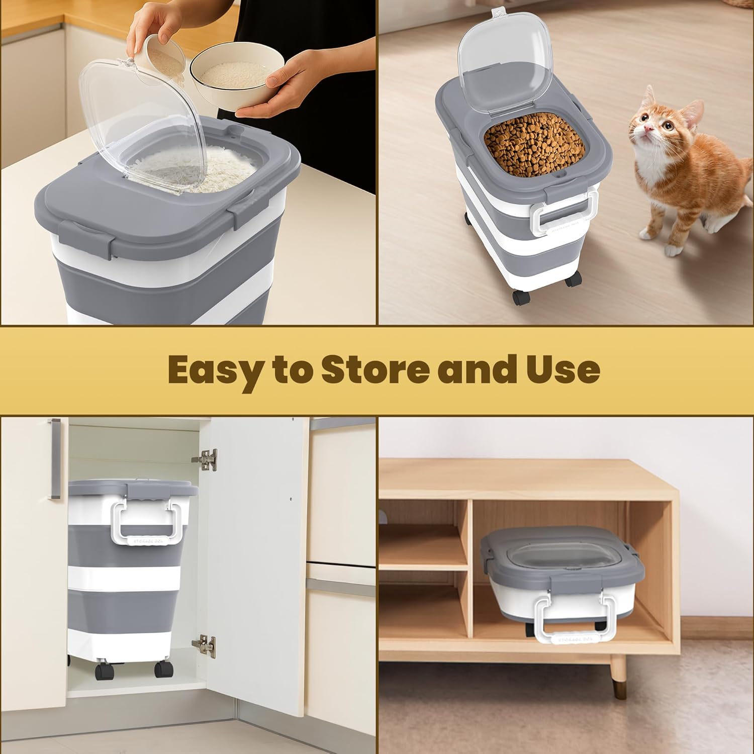 HOYTAMDA 30-40Lbs Rice Container,Collapsible Airtight Food Storage Containers with Wheels,Handle,Rice Storage Container with Small Bin and Scoop,Rice Dispenser for Flour Sugar Cereal Grain Dog Cat