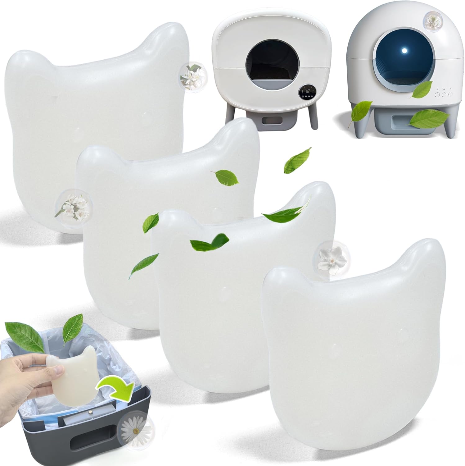 NewKe 4 Pack Deodorizer for Cumrige Self Cleaning Litter Box, Odor Eliminator Compatible with Fumoi Automatic Cat Litter Box, Cute Cat Shaped Design with Camellia Flower Scent, Fragrance Refills