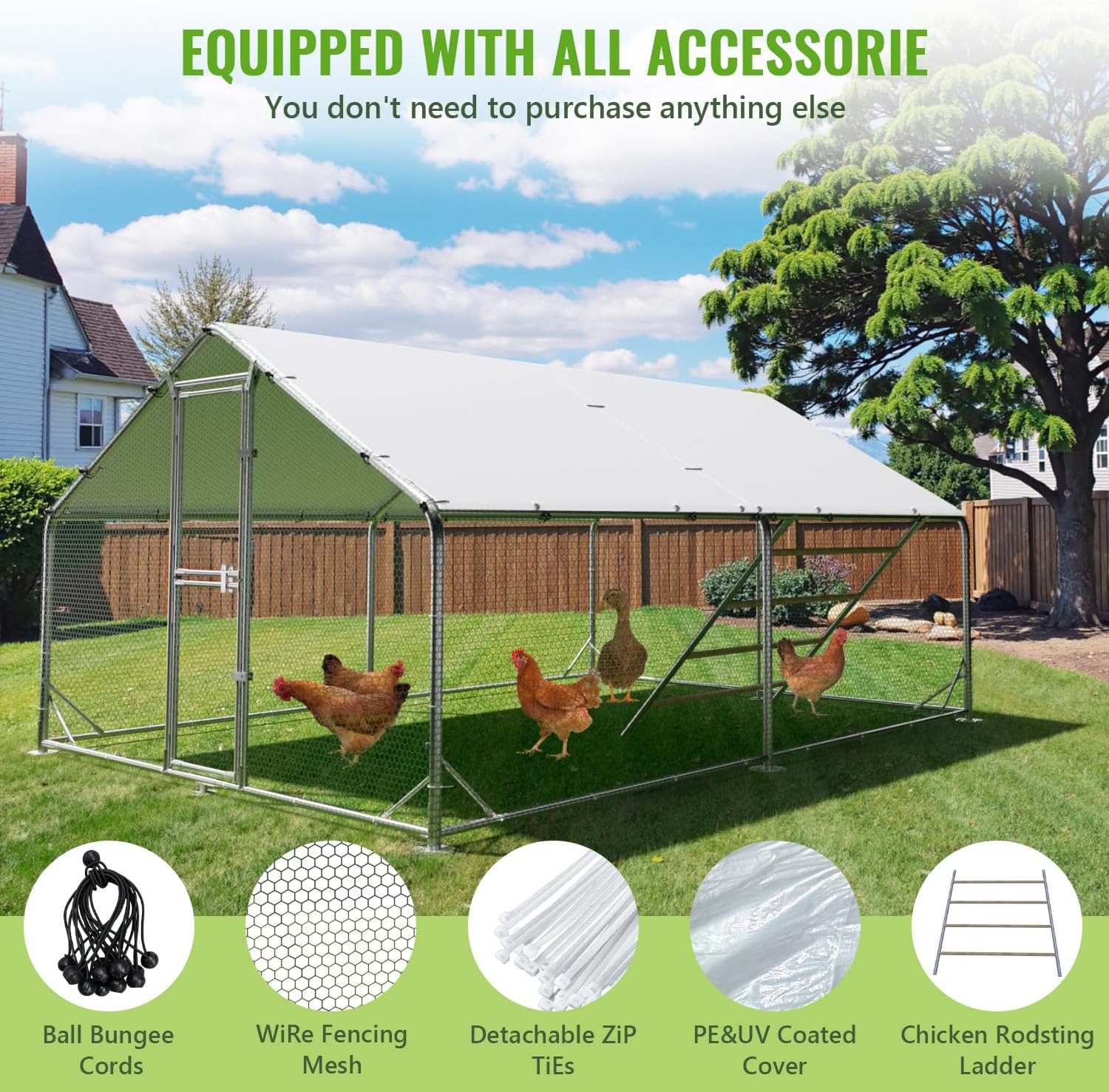 Large Metal Chicken Coop, 10x13x6.5FT Chicken Runs for Yard with Cover