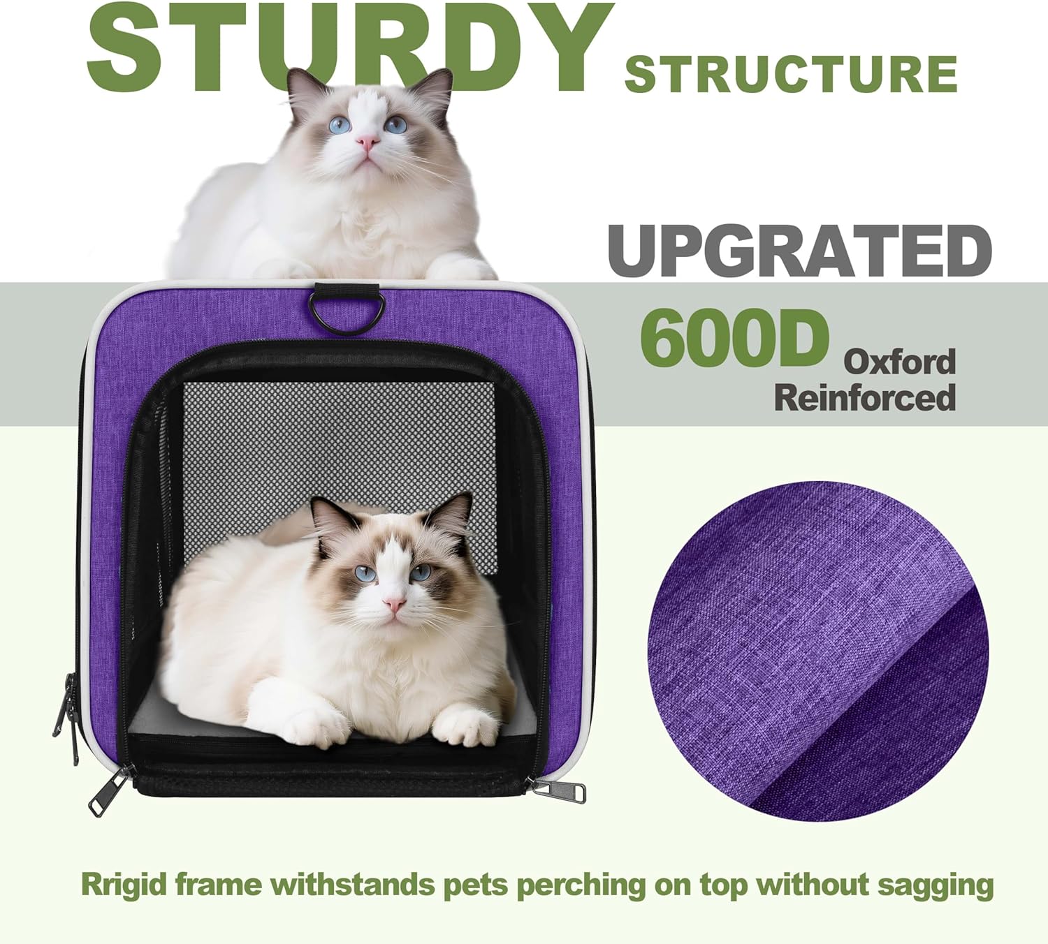 Per Carrier for Cat 18x11x11 Inch FAA Complaint, Kitten Taxi Top Load Soft Cloth Bag, Small Animal Portable in Cabin Crate Shih Tzu Dog Kennel Carry Case, 4-Sided-Ventilated Kitty Purse Purple