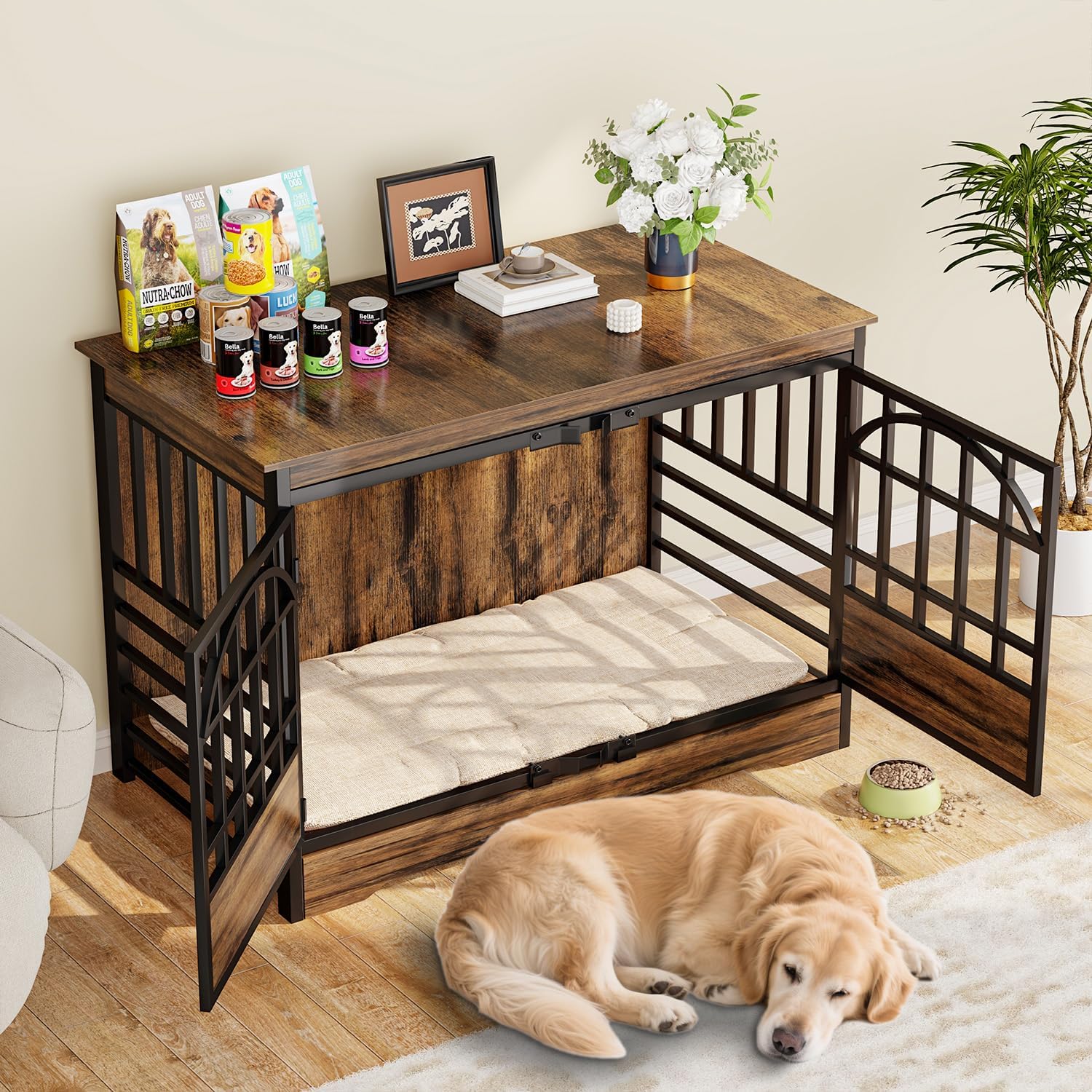 - 【Multifunctional Furniture-Style Crate】 Combining vintage charm with modern minimalism, this dog crate furniture effortlessly complements any home décor. More than just a cozy retreat for your dog, it also functions as a TV stand, side table, or stylish console. Its spacious interior ensures your dog’s comfort, while the design maximizes both utility and style in your living space.