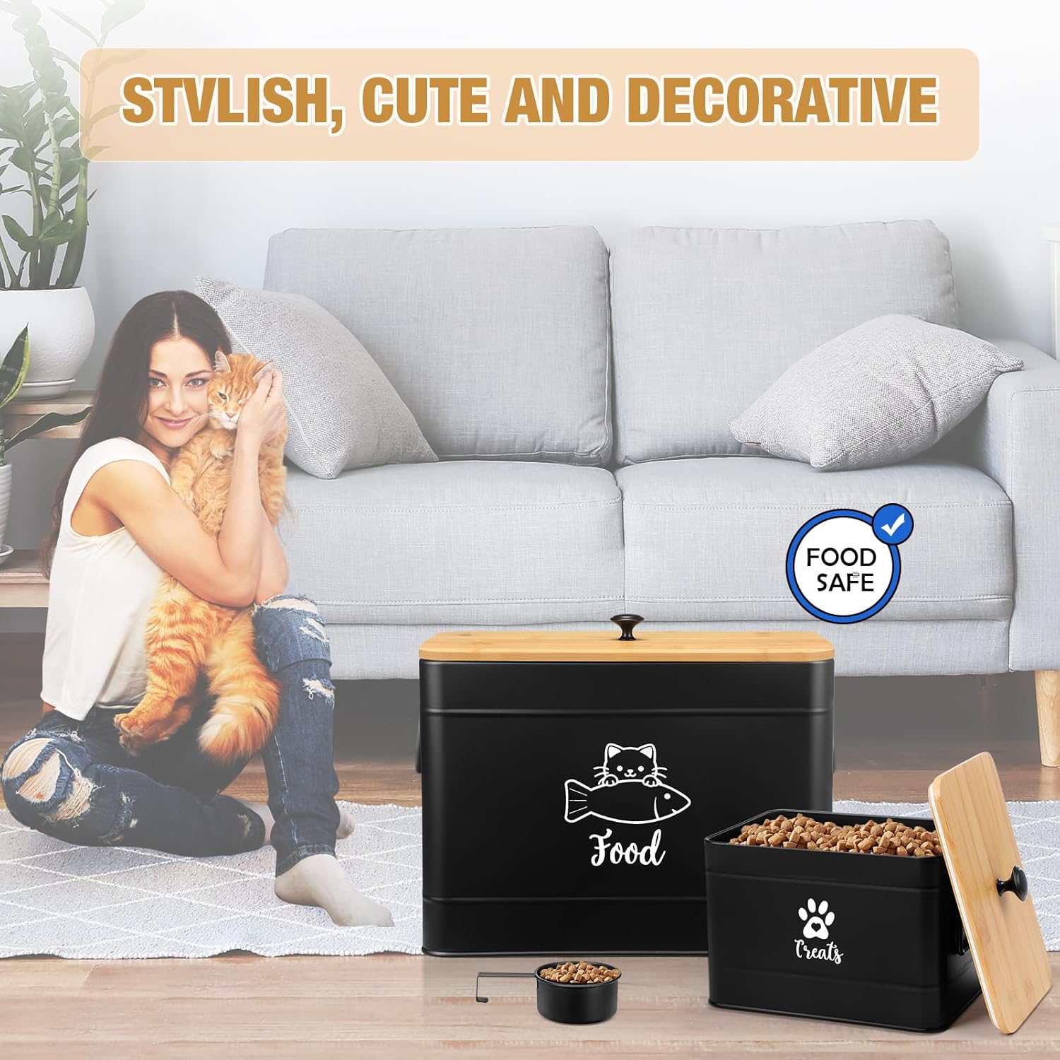 - Practical Design: airtight bamboo lid keep pet food fresh and dry, and make sure that treats are easy to access for you yet sealed for your pet; The decorative cat food canister set is equipped with a spoon, meet your various needs, such as dry and wet food separation; And the decorative pet food container comes with replaceable sealing rubber ring, if you think the current sealing effect of the lid needs to be improved, you can try using the spare sealing ring