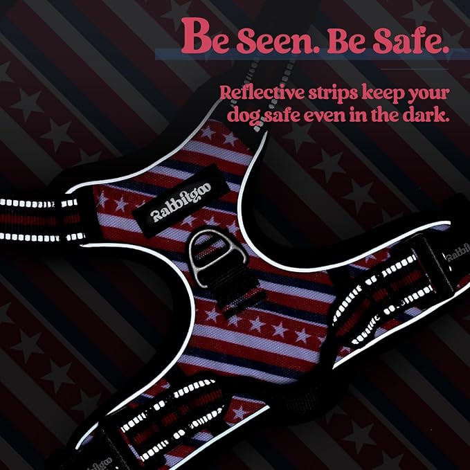rabbitgoo Dog Harness No Pull with 2 Leash Clips, Adjustable Soft Padded, Reflective Oxford No Choke Pet Vest with Easy Control Handle for Large Dogs, Red Stripe, S