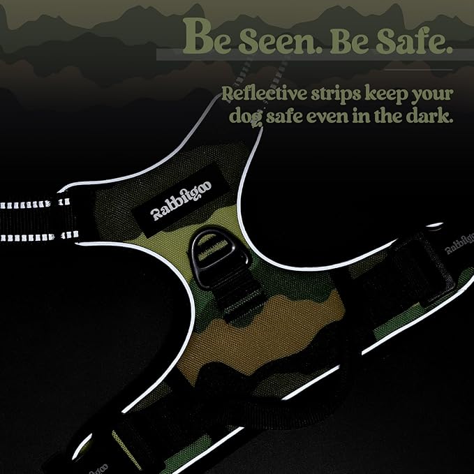 rabbitgoo Dog Harness No Pull with 2 Leash Clips, Adjustable Soft Padded, Reflective Oxford No Choke Pet Vest with Easy Control Handle for Large Dogs, Green Mountain,L
