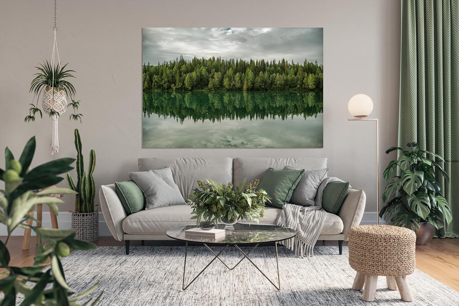Nature Wall Art Prints - Ocean Forest Mountain Lake Canvas Landscapes - Small to Extra Large Living Room Bedroom Kitchen Bathroom Décor (Forest Reflection, 28L" x 41W")