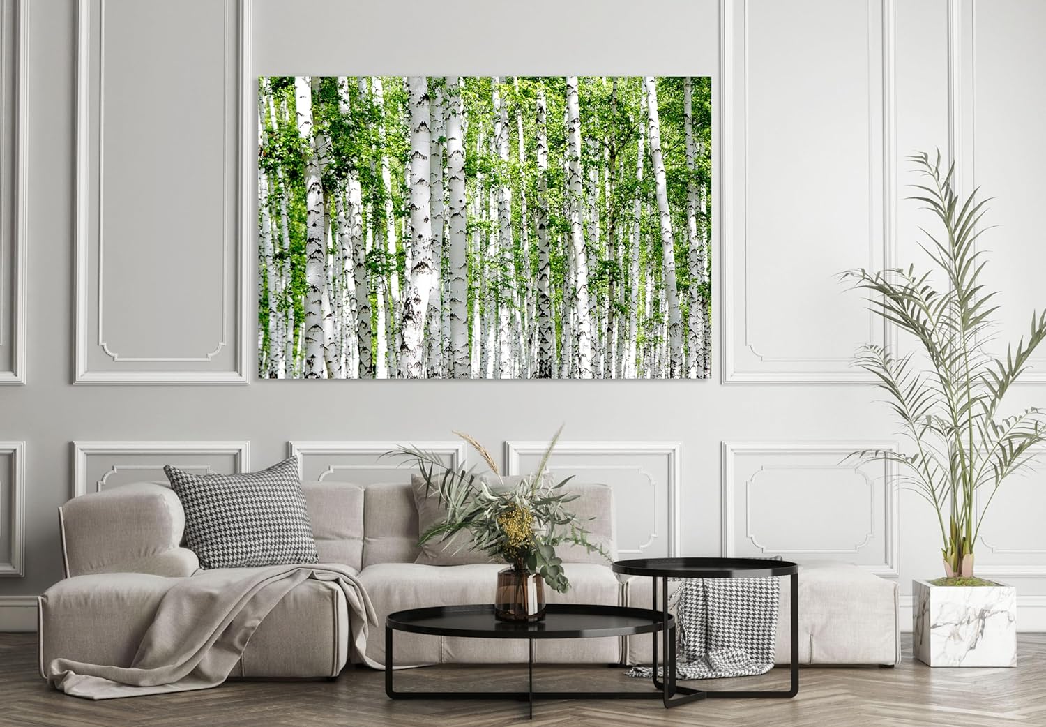 Nature Wall Art Prints - Ocean Forest Mountain Lake Canvas Landscapes - Small to Extra Large Living Room Bedroom Kitchen Bathroom Décor (Green Brich Trees, 20L" x 30W")